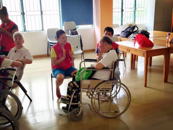 时间无情,人有情,活动时间將近结束,我們跟随护工阿姨逐一推送爷爷、奶奶們回房间一一的握手、拥抱道別。这次在陪伴学习中,我的內心深处好感动。在回家的公车上心里一遍遍地唱着《感恩的心》我来自偶然,像一颗尘土,有谁看出我的脆弱。我来自何方,我情归何处,谁在下一刻呼唤我。天地虽宽,这条路却难走,我看遍人间坎坷辛苦......