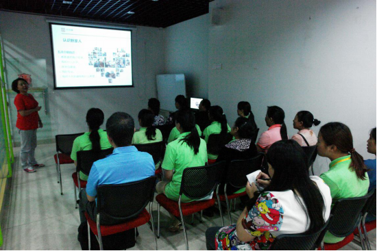 中心于2016年7月28日下午组织培训分享会由在北京学习了二十天的李桂仙和林彩进行分享学习感受,参加的人员有义工、员工、老人共30多位。