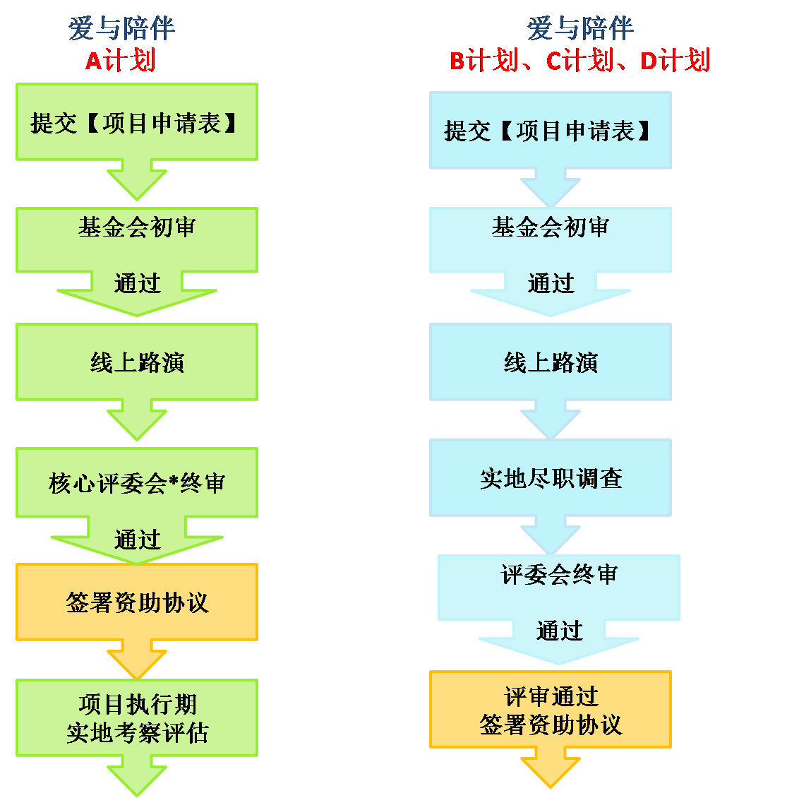 提供“目标明确、使用灵活”的着眼于机构发展的长期资金。针对达到不同发展阶段的组织提供4个资助计划。资金用途由被资助方根据其自身需求量身定制,可以用在与“爱与陪伴”项目相关的培训服务、文化活动、行政办公、人员费用等方面。资助金额每年每家2万元至15万元。每年资金分两期拨付:签署协议拨付当年资助款50%,项目中期评审合格拨付剩余50%款项。 当年项目终期评审合格的组织,根据协议约定拨付下一年度款项。项目评审不合格的组织,将终止资助协议的执行。