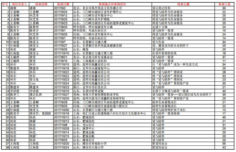 全国开展”爱与陪伴一堂课“项目公示:2017年9月-11月