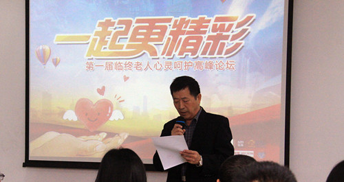 中国生命关怀协会会员服务部部长杜浦来宣读中国生命关怀协会心灵呵护工作委员会成立的批复。北京十方缘公益基金会将支持心灵呵护工作委员会开展培训、文化交流等活动,推动老人心灵呵护职业化进程。
