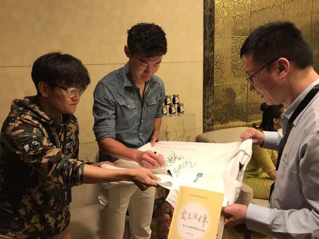 十佳劳伦斯冠军在十方缘文化衫上签名