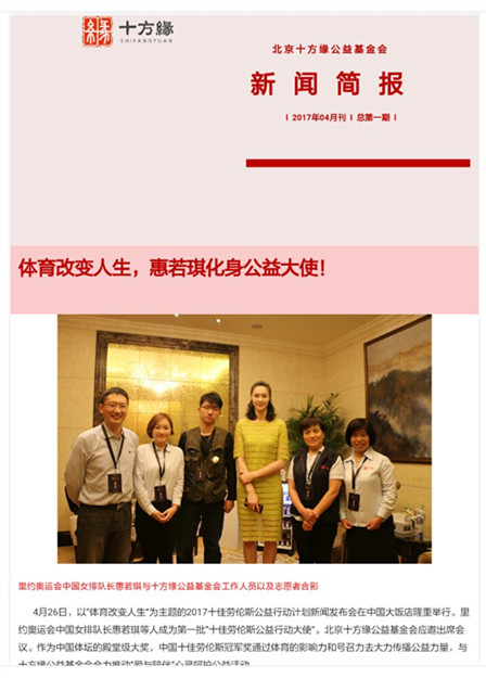 2017年4月26日,北京十方缘公益基金会应邀出席在北京举行的“体育改变人生:2017十佳劳伦斯公益行动计划”新闻发布会。