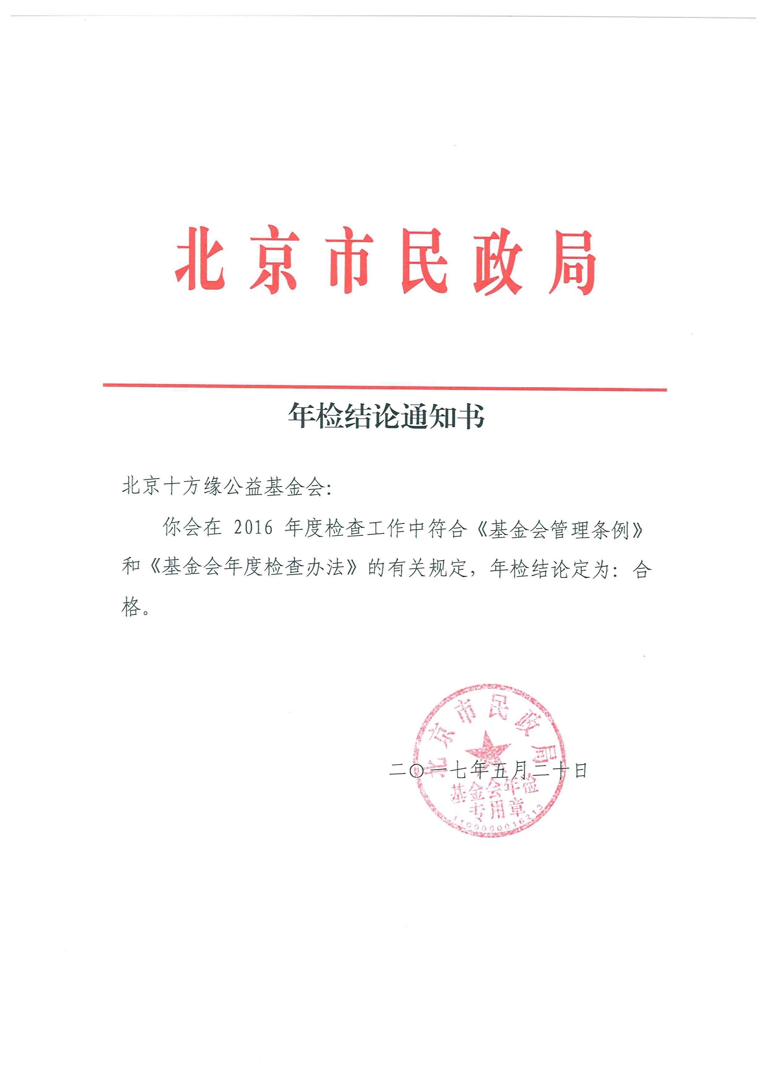 2017年5月十方缘基金会完成2016年年审和财务审计工作。