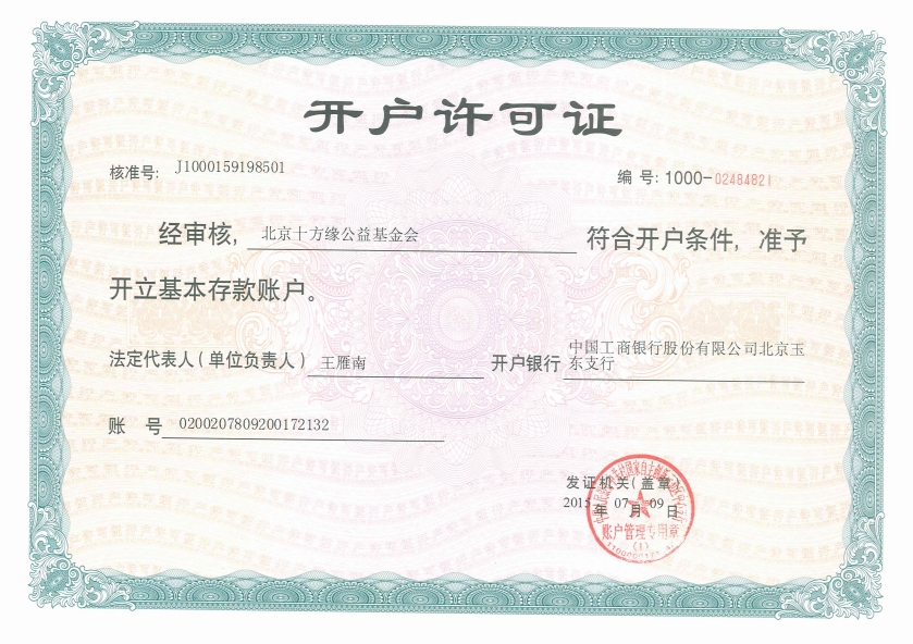 十方缘公益基金会注册登记证书