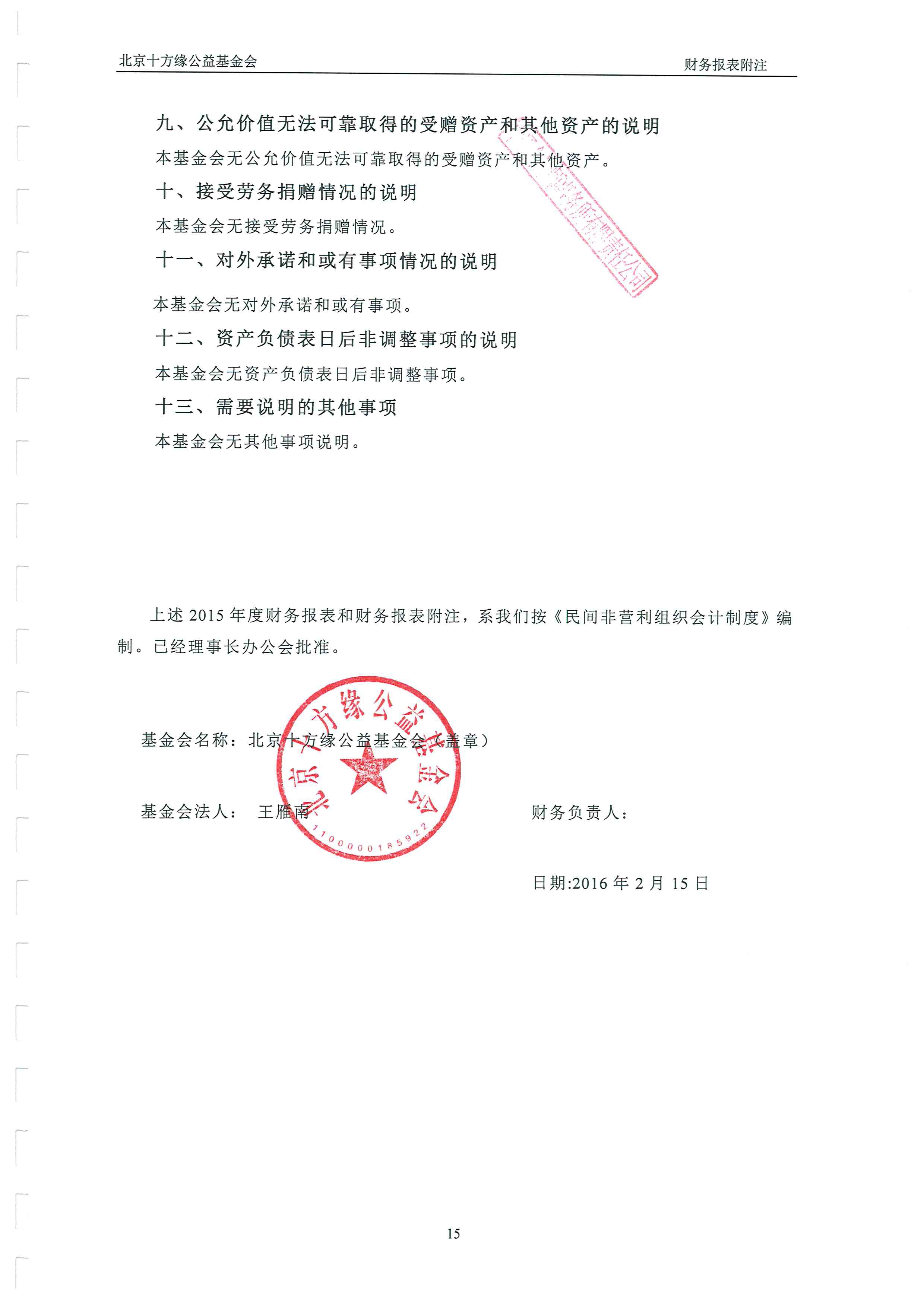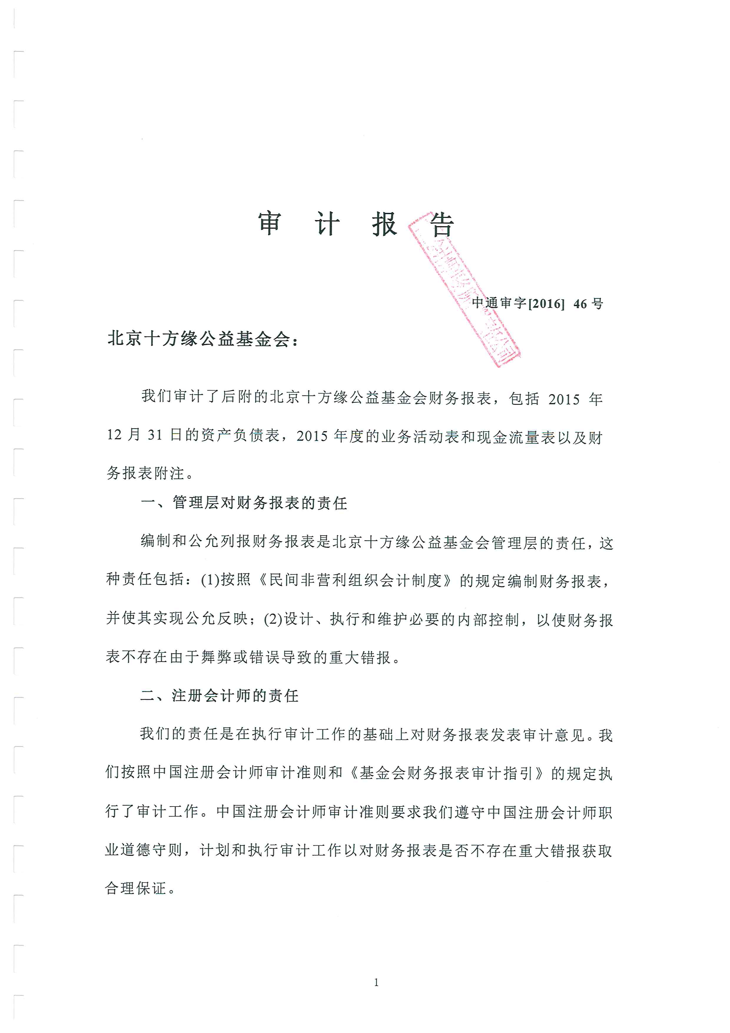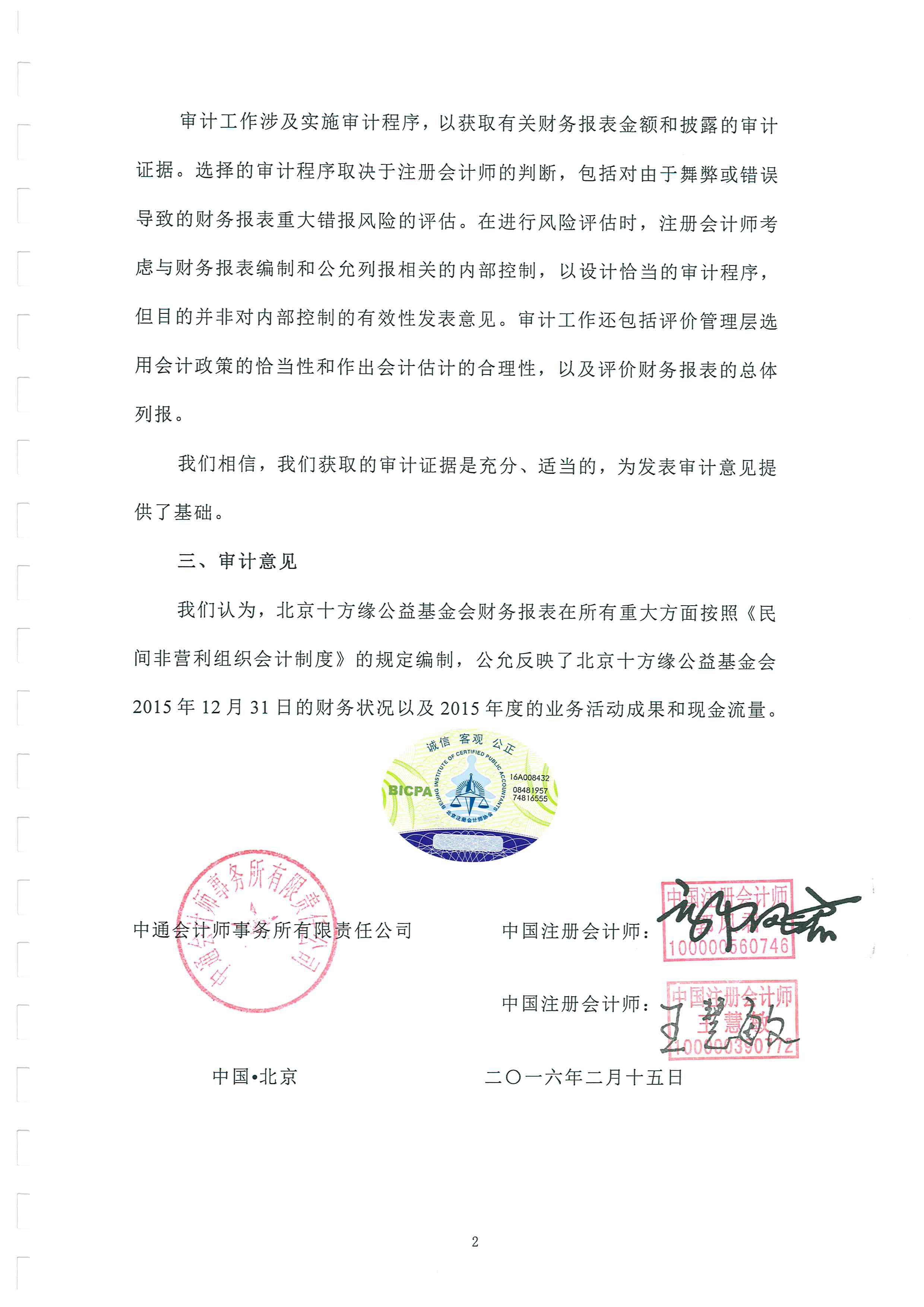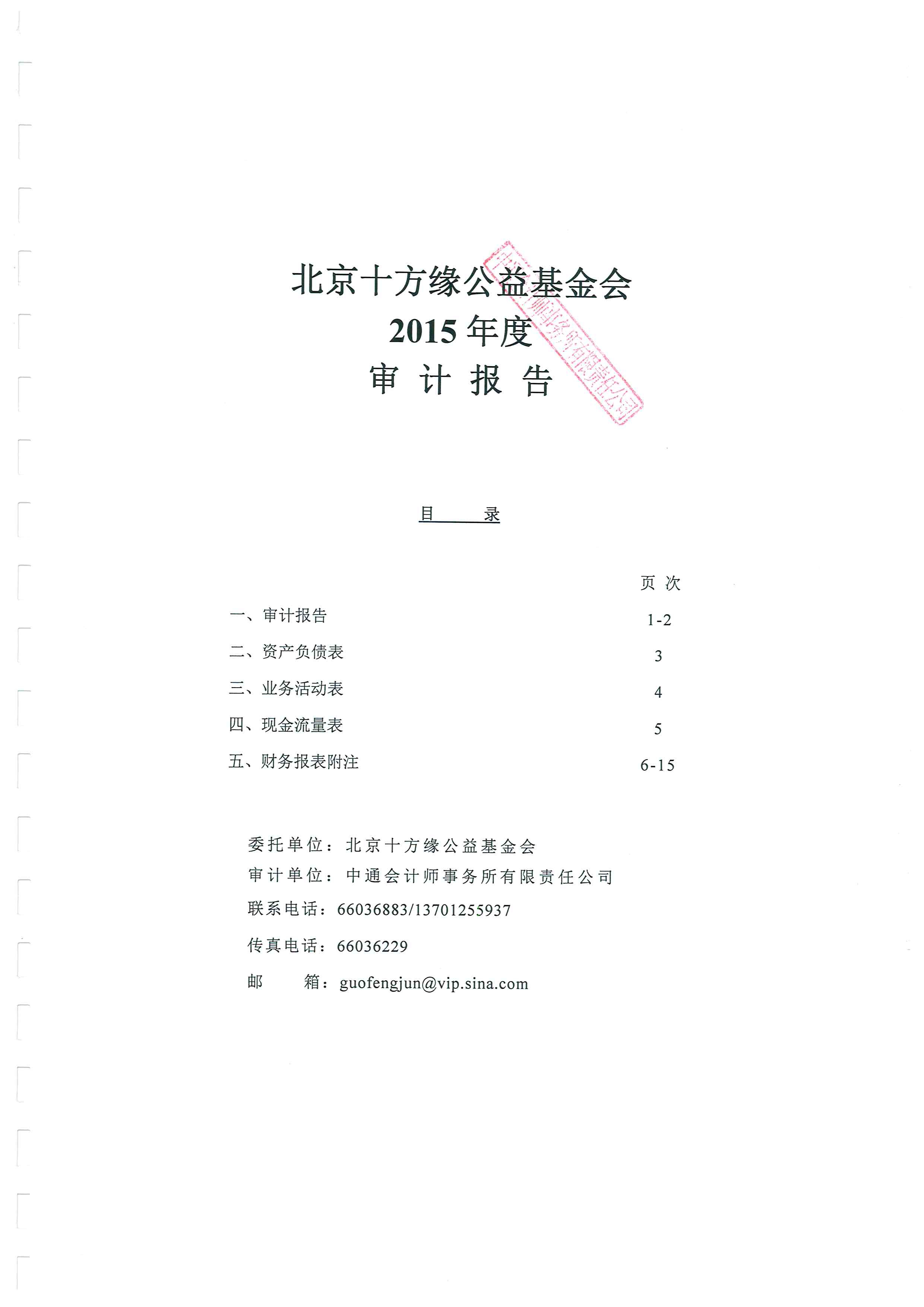 北京十方缘公益基金会 2015年度审计报告