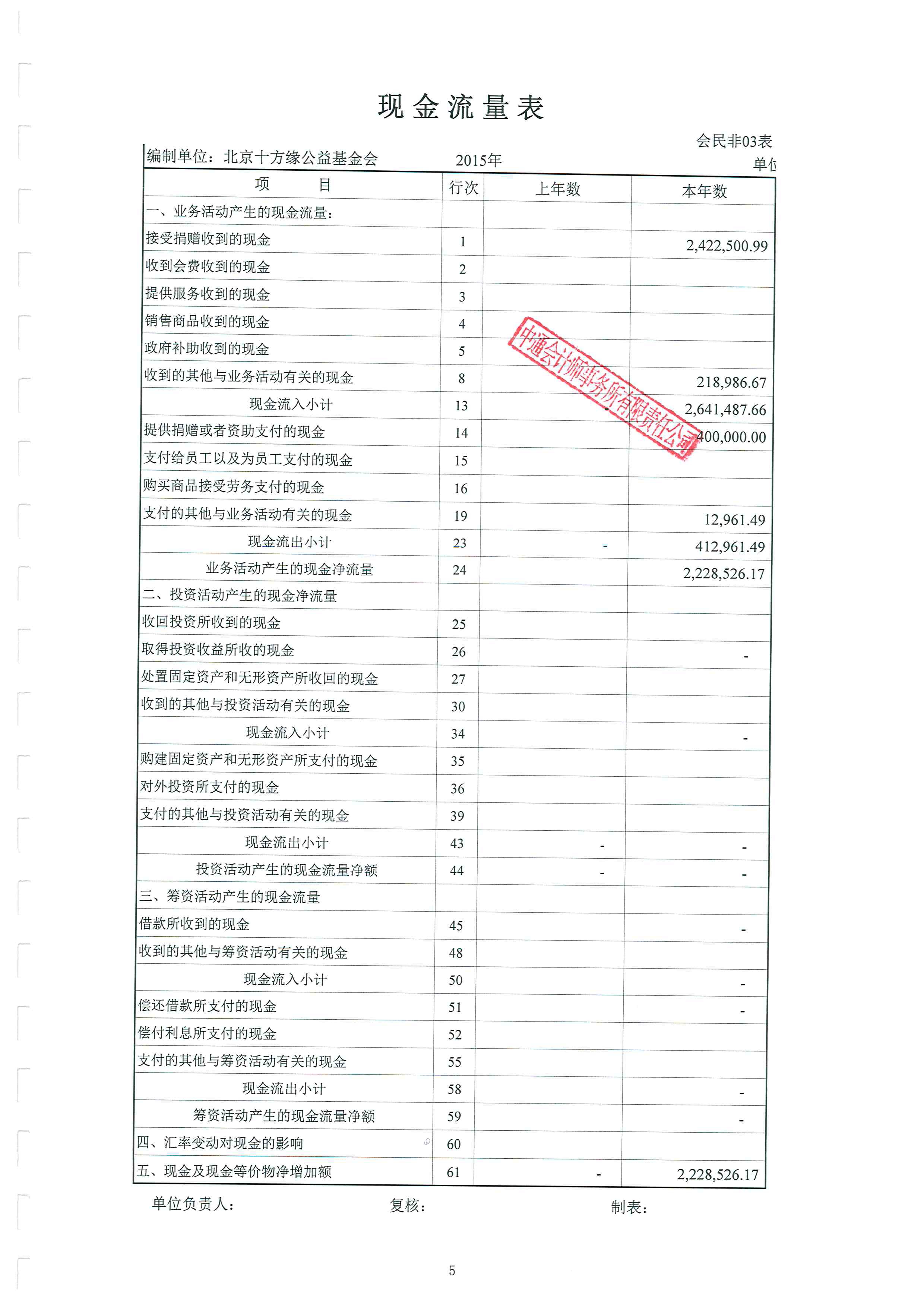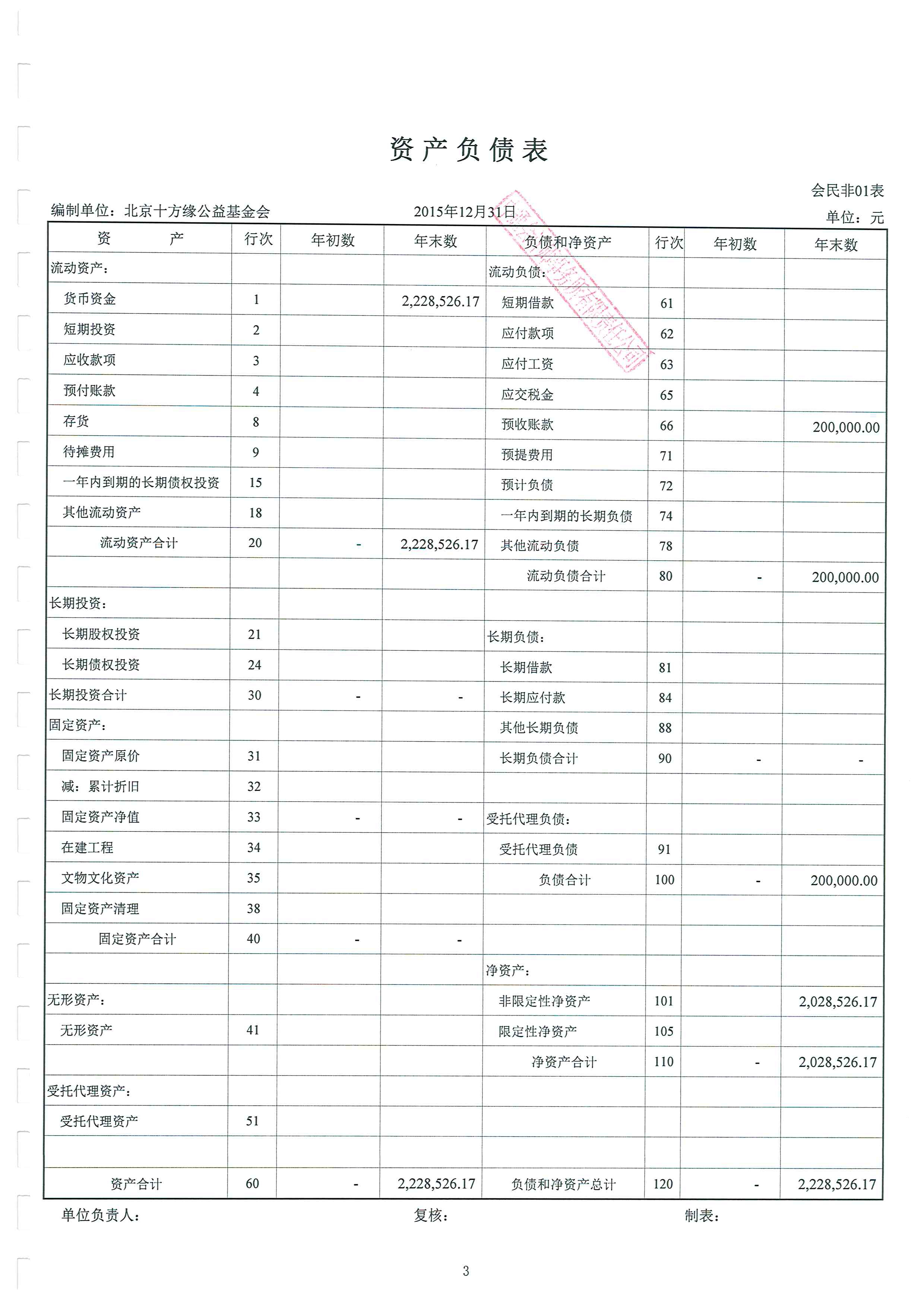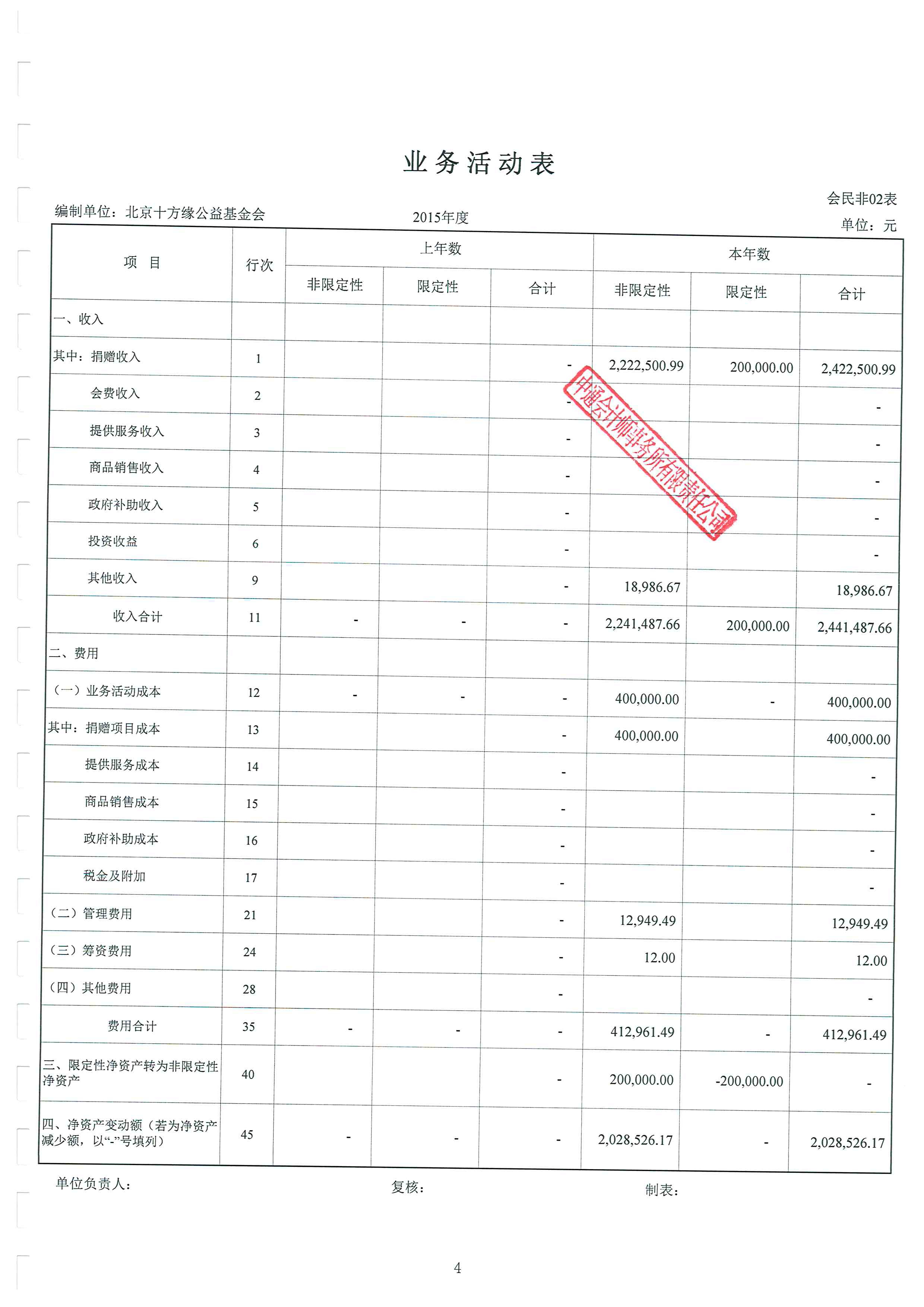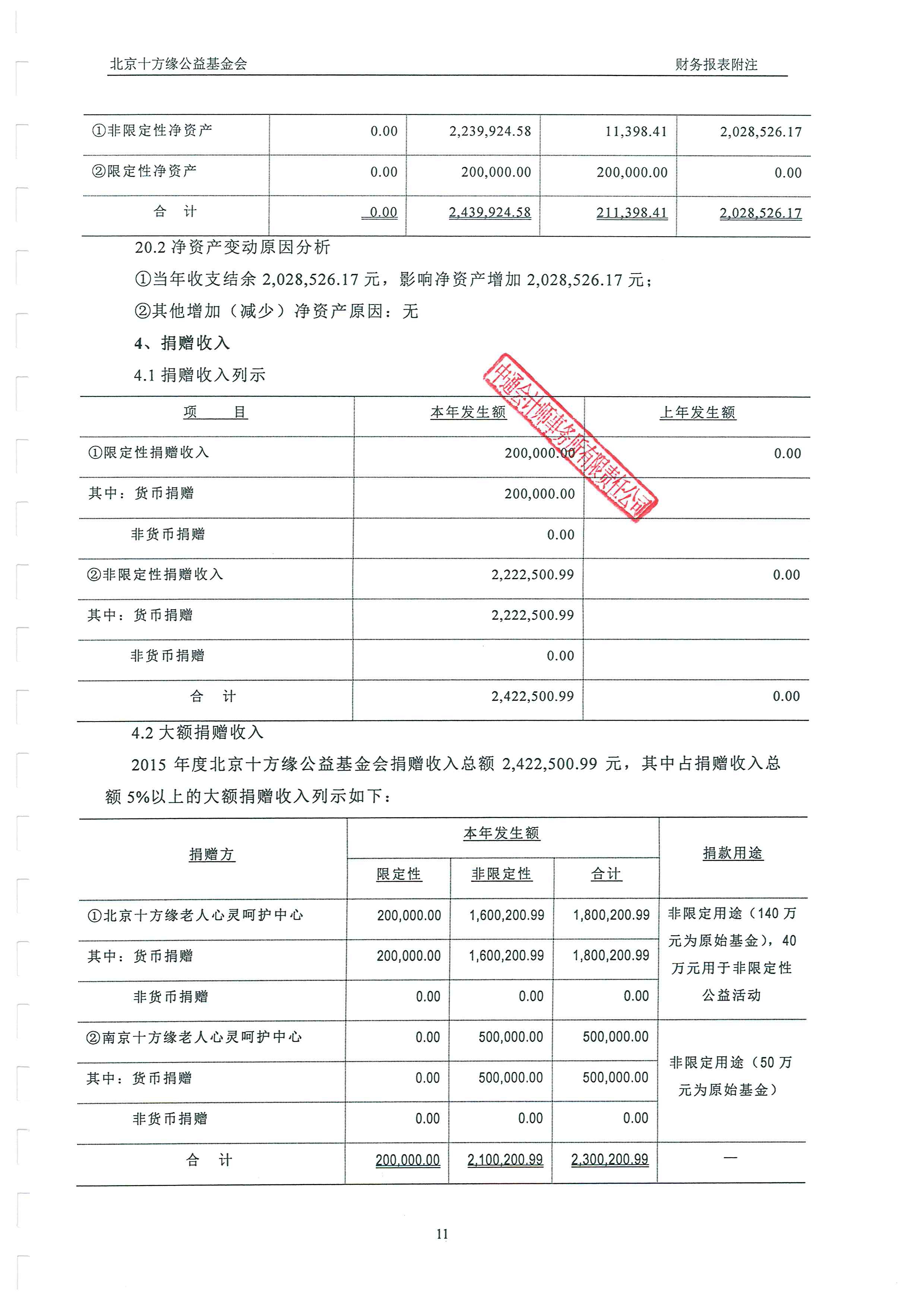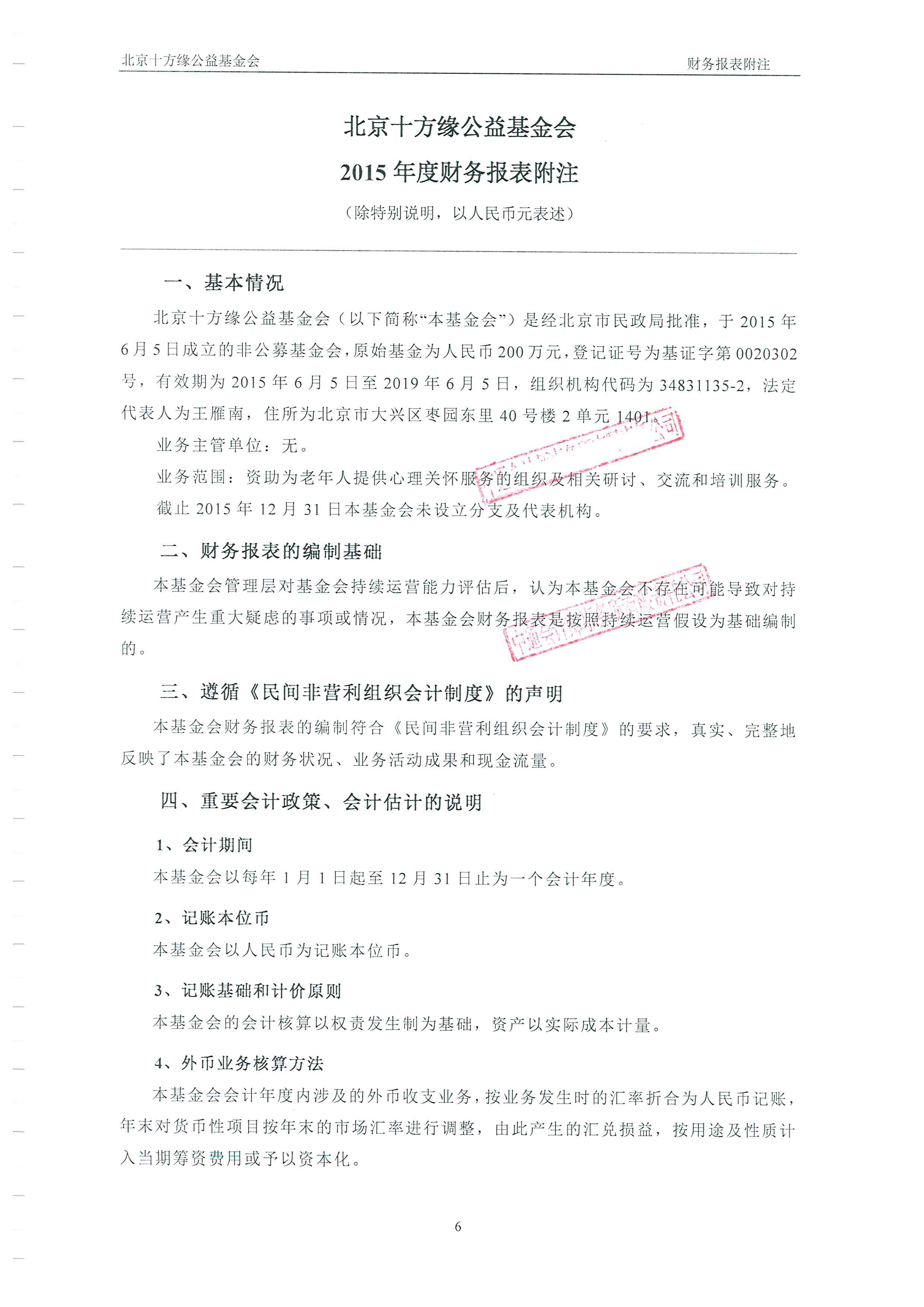 北京十方缘公益基金会 2015年度审计报告